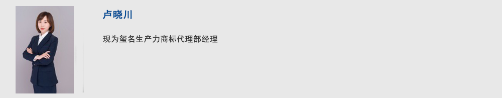 卢晓川,现为玺名生产力商标代理部经理,从事商标代理岗位17年。