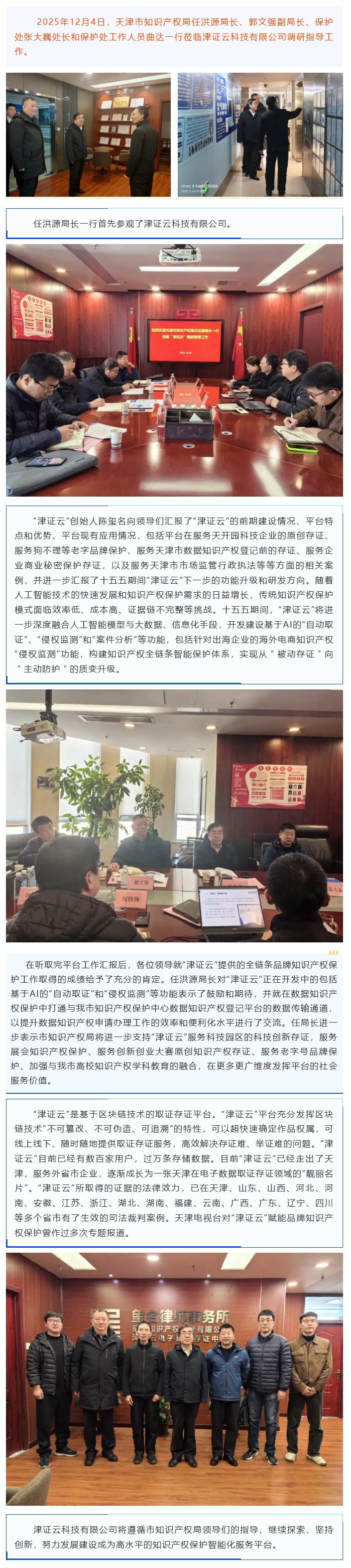 天津市知识产权局任洪源局长一行到“津证云”调研指导工作