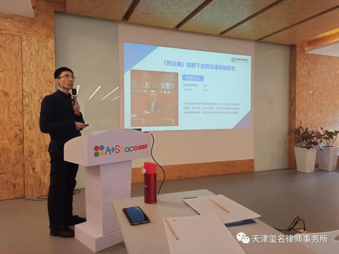 2020年11月20日,玺名律师事务所主任陈玺名博士应科服网、凌奥创意产业园以及A+Space空间组织邀请,为民营企业的各位朋友做主题为《民法典》视野下合同法律风险防范的线下培训活动。