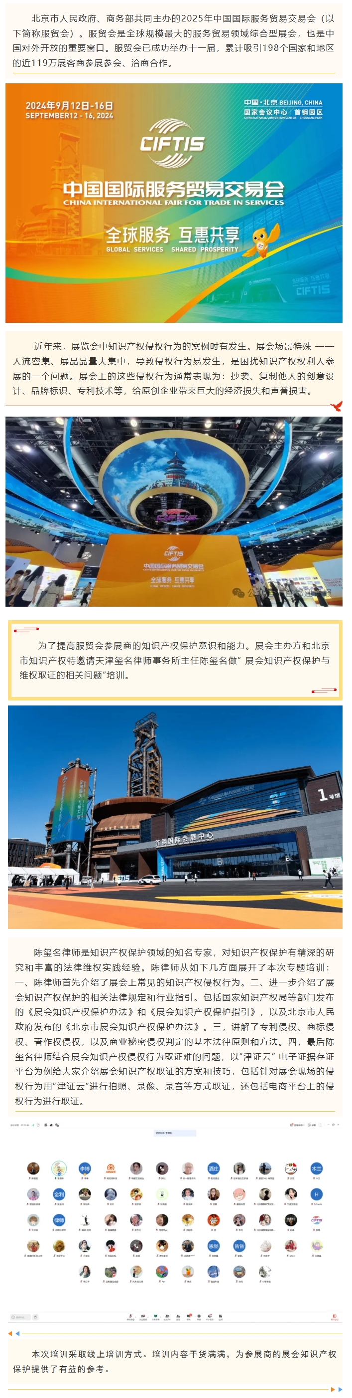 玺名律师受邀为2025年中国国际服务贸易交易会的参展商进行知识产权保护的展前培训