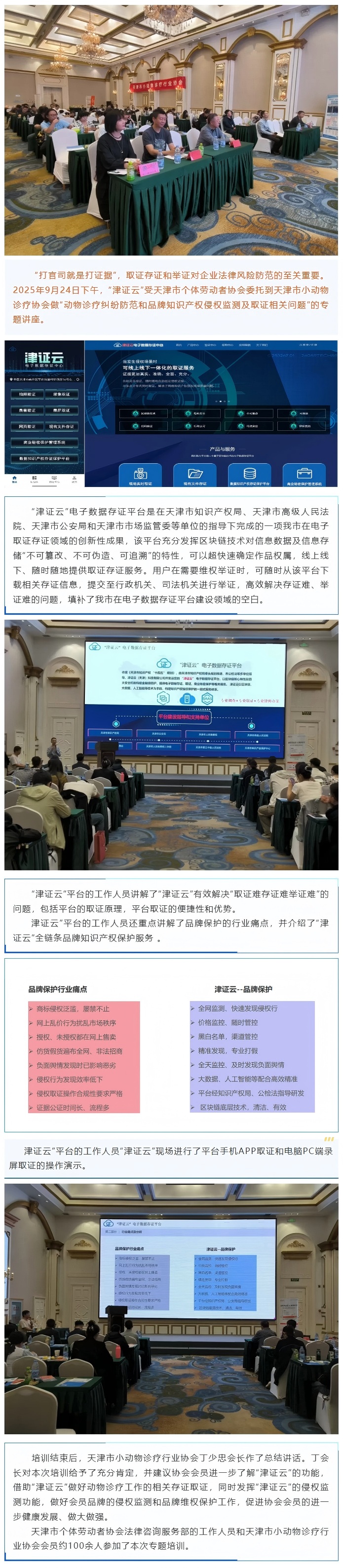 “津证云”受邀到天津市小动物诊疗协会做“动物诊疗纠纷防范和品牌知识产权侵权监测及取证相关问题”的专题讲座