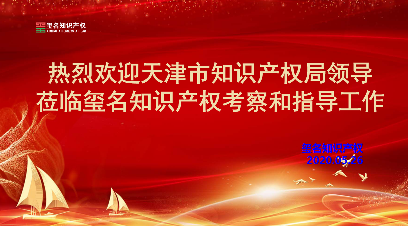 2020年5月26日,天津市知识产权局副局长郭文强、知识产权运用促进处处长王杰、傅强等领导及工作人员到天津玺名知识产权代理有限公司视察工作,并参观交流。天津玺名知识产权代理有限公司总经理陈玺名及相关部分员工接待了郭局长一行。